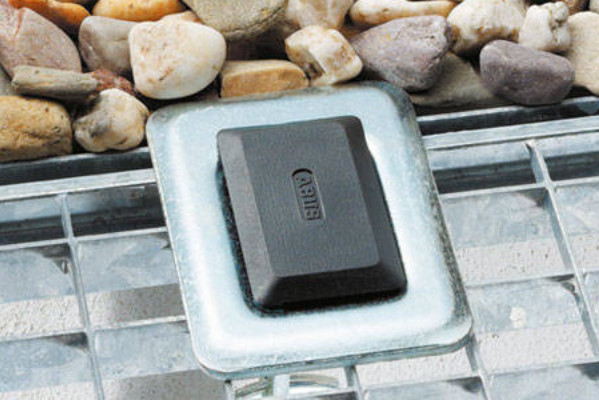 Stabile große Halteplatten liegen auf dem Gitterrost und dem Rahmen auf. Es gibt zwei verschiedene Konstruktionen: eine stabile Metallschiene und – besonders bei Kunststoffschächten – eine variable Kette, die die massive Halteplatte mit dem Mauerwerk verbindet.