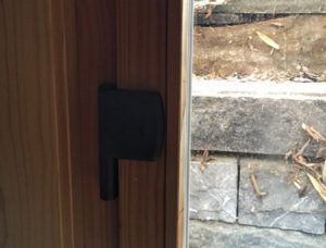 Stabiles Fenster-Stangenschloss in Fenstergriff-Optik.